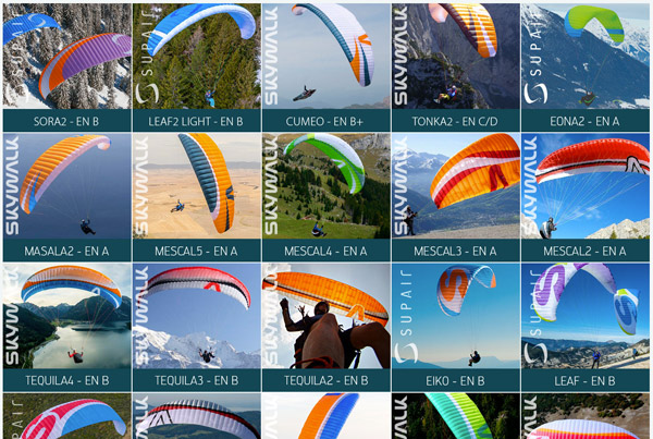 Aqui você encontra informações sobre modelos de parapentes Skywalk e SupAir fora de linha.